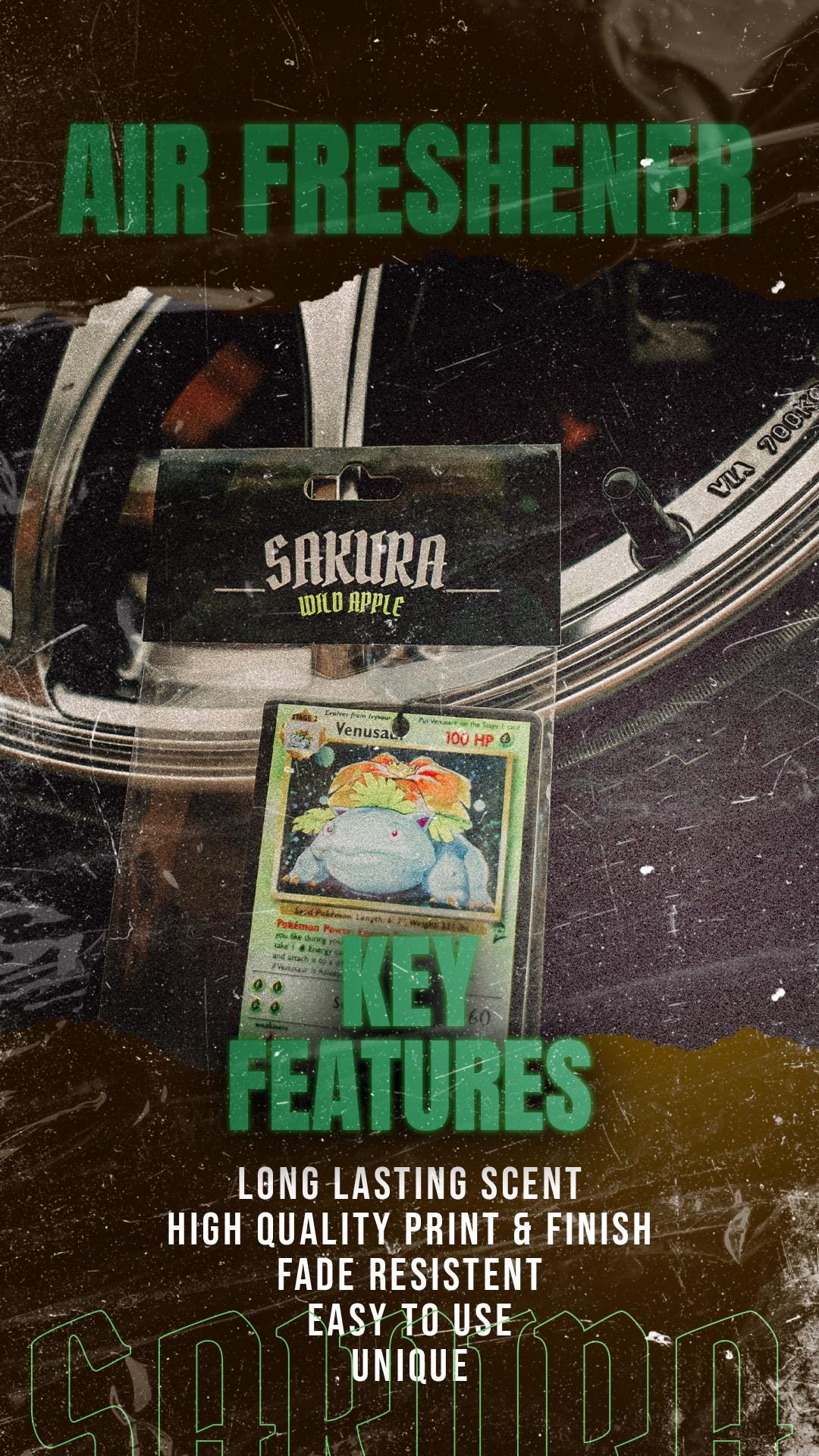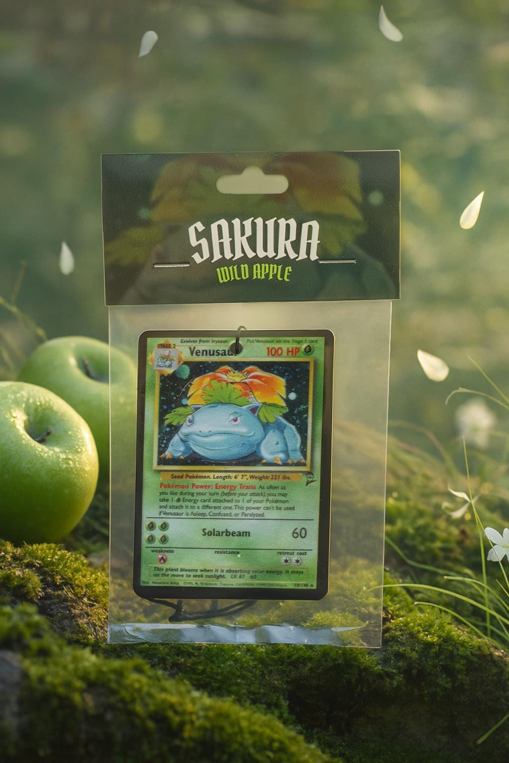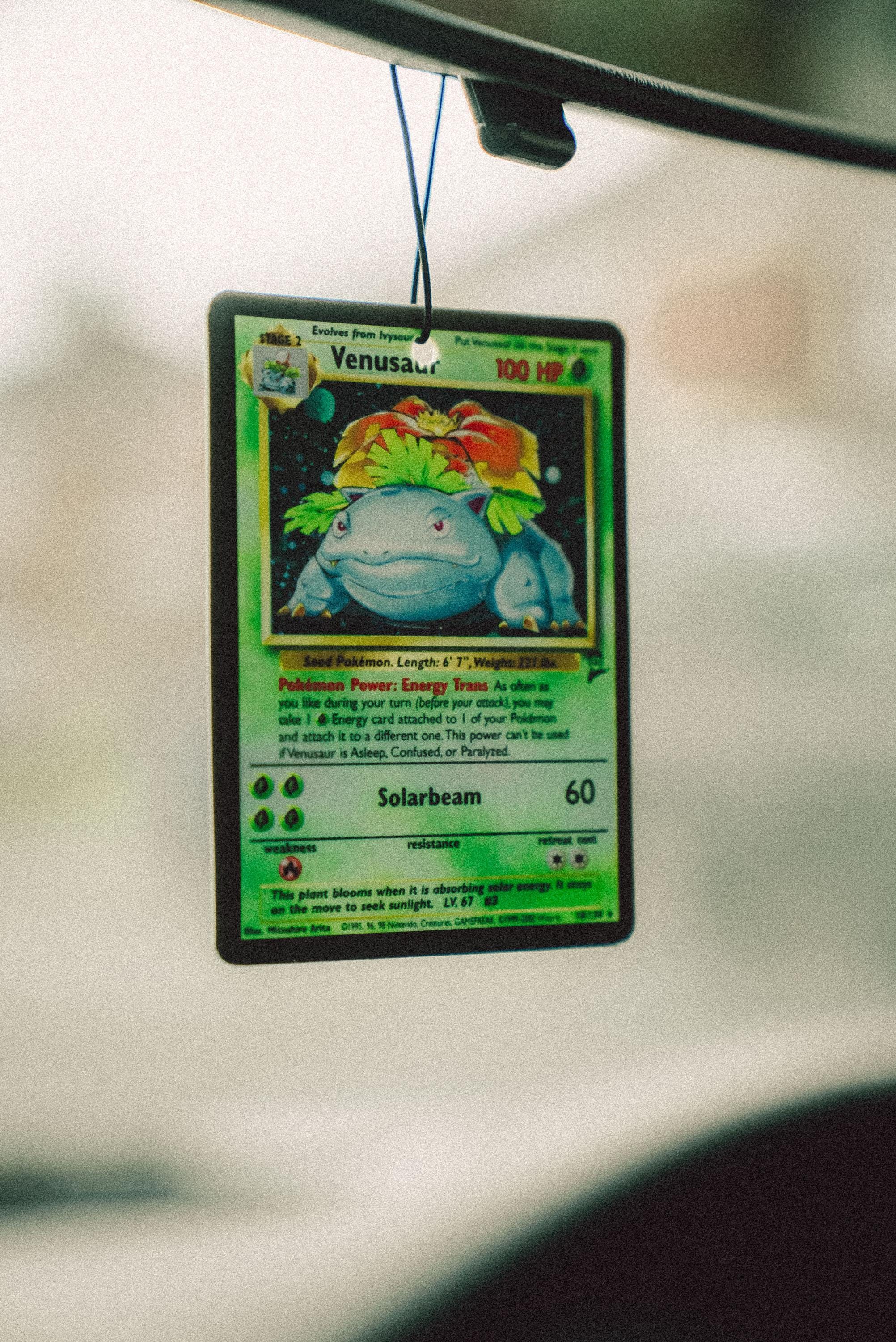 The Venusaur Trading Card Air Freshener is pure plant power for your whip or desk. Sweet, crisp, and wild — designed for collectors, petrolheads, and anime fans alike.