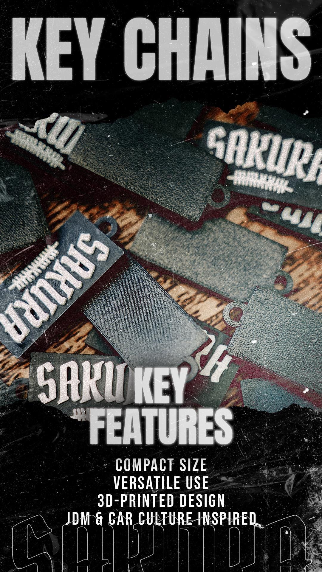 SAKURA STREETS™ 3D Printed Keychain – Upgrade Your Keys, JDM Style.